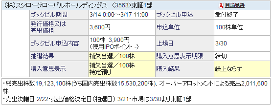 IPO抽選結果 3563, IPO, スシローグローバルホールディングス
